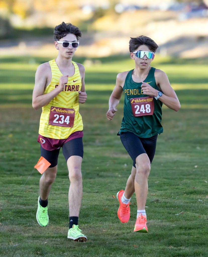 Pendleton’s Evelyn Hayes ran a 22:31.30 to finish eighth overall, followed by Rylee Jackson (12th, 23:52.10), Kimberly Tinoco (18th, PR 24:14.60), Marion Oliver (23rd, 25:23.20) and Ella Holtz (24th, 25:26.60).