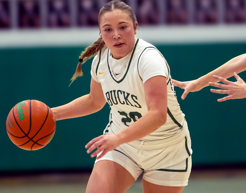 The teams were tied 14-14 after the first quarter, but the Bucks, behind six points from Katelyn Boatman, went on a 23-4 scoring spree to take a 37-18 lead at the half.
