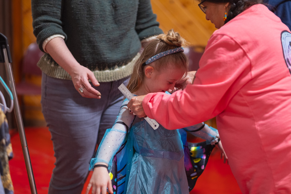 As children practiced their steps, they also had access to a small but growing closet of regalia — shawls, wing dresses, shell dresses, bear-claw feet, ribbon shirts and more — giving them a chance to see how movement and regalia work together.