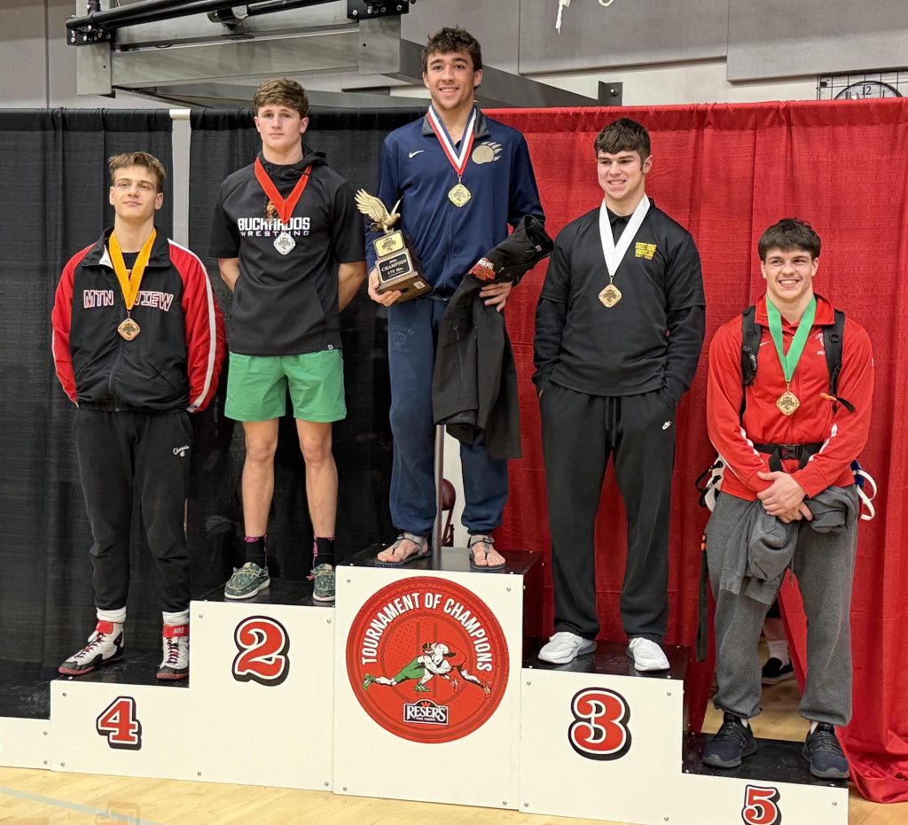 Wesley Browning finished sixth at 106 pounds for the Bucks, losing in the quarterfinals before battling his way back through the consolation round.
