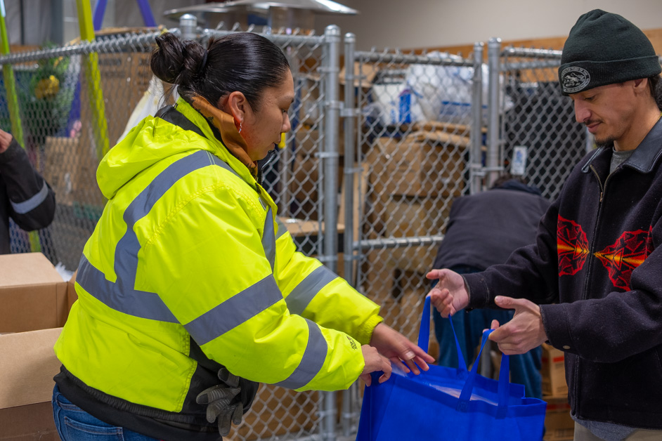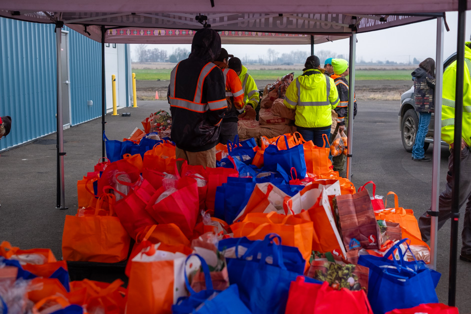 MISSION — Cold weather did not slow volunteers at the Tutuilla Food Sovereignty Center, where they packed hundreds of bags of fresh food, bringing comfort and nourishment to families across the Umatilla Reservation.