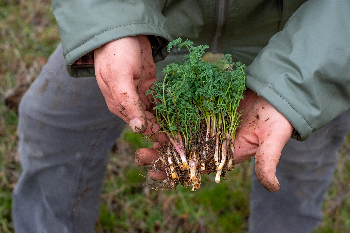 “And when we’re digging, we’re gonna push down and then we’re gonna wiggle, wiggle,” she said, gently working the kupin into the dirt. “We’re gonna wiggle that kupin in there to get down into the soil beneath the roots, then pull back, pull back and pull up that root.”