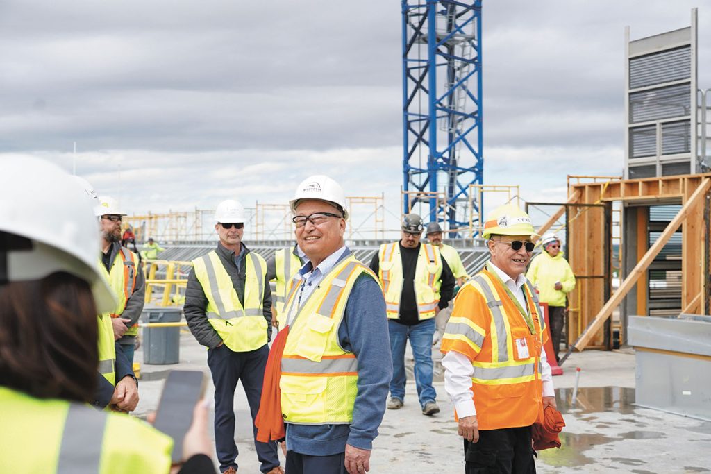 MISSION — One final beam was placed on top of the Wildhorse Resort & Casino (WRC) second hotel tower, 10 stories up in the air, during a topping-off ceremony signifying the end of the outer structure’s construction.