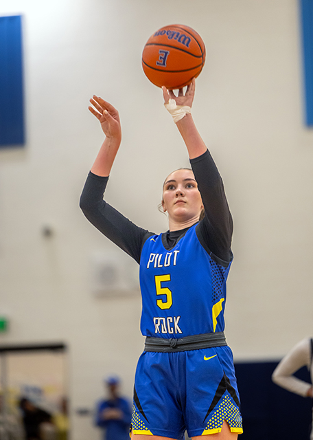 Pilot Rock’s Kessa Litfin shoots on Jan. 9, 2026, in Echo. (Kathy Aney/The CUJ)